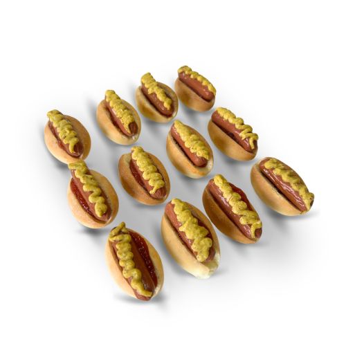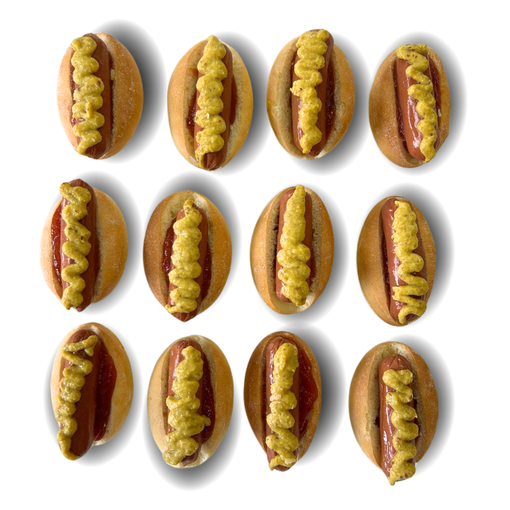 Disfruta de una docena de mini perritos calientes, perfectos para cualquier evento o celebración. Cada mini perrito está cuidadosamente elaborado con una salchicha de primera calidad y un panecillo suave y esponjoso. El toque final lo pone un topping de mostaza y ketchup que realza su sabor y los hace irresistibles. Ideales para desayunos, brunchs, fiestas o como parte de un catering.