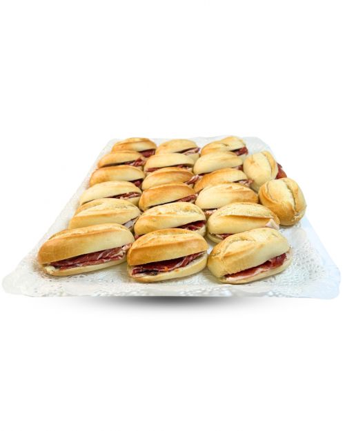 Nuestras 20 Chapatinas de Jamón con Tomate son un clásico español que nunca falla, perfecto para cualquier evento o reunión. Cada chapatina está elaborada con pan crujiente, tomate fresco y jamón selecto, ofreciendo una combinación de sabores sencilla pero deliciosa.