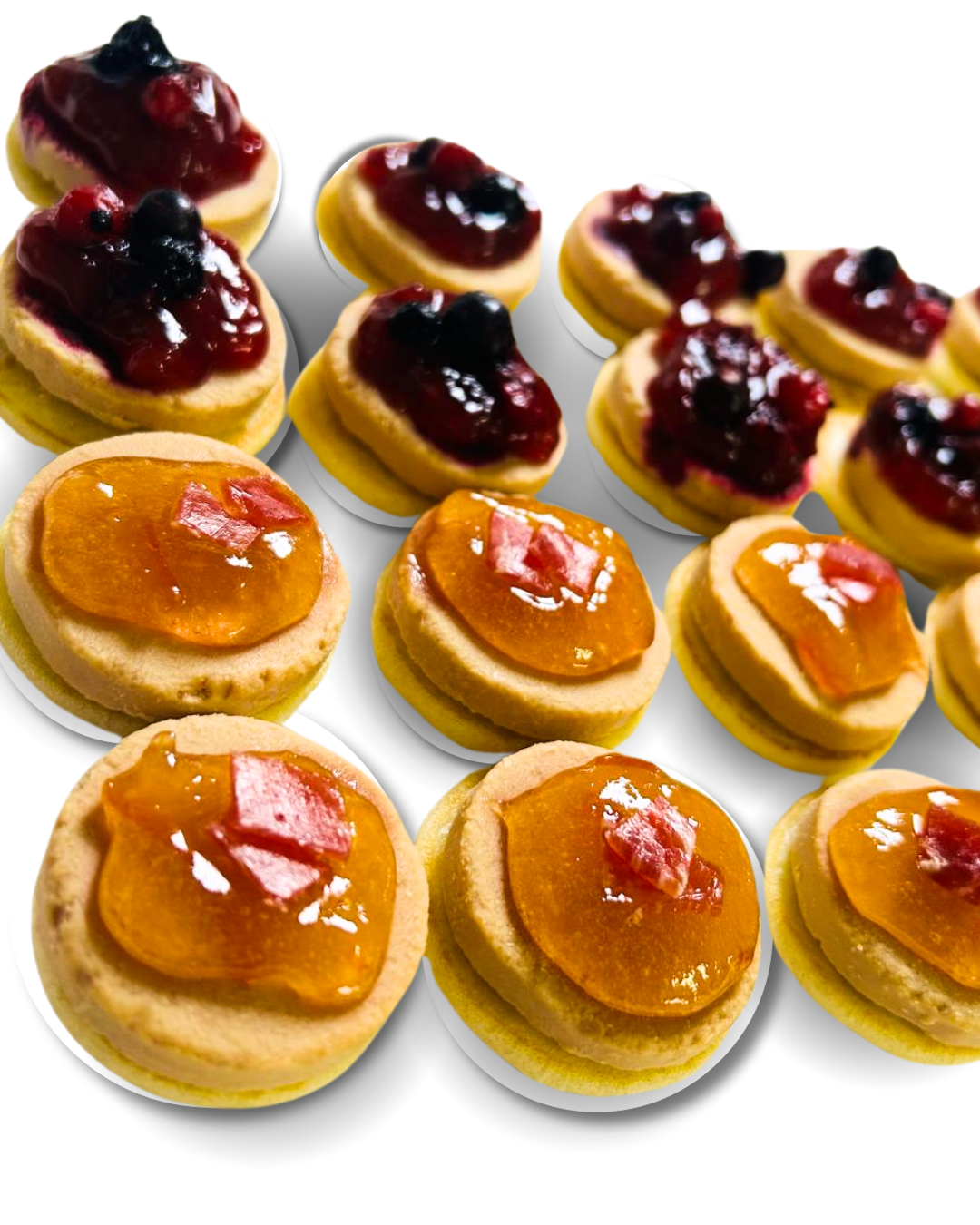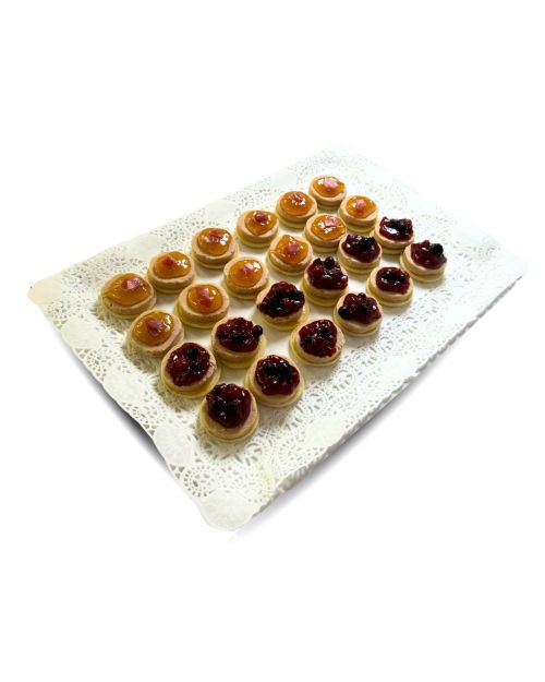 12 unidades con mermelada de frutos rojos: El dulzor de la mermelada realza el sabor intenso del foie.