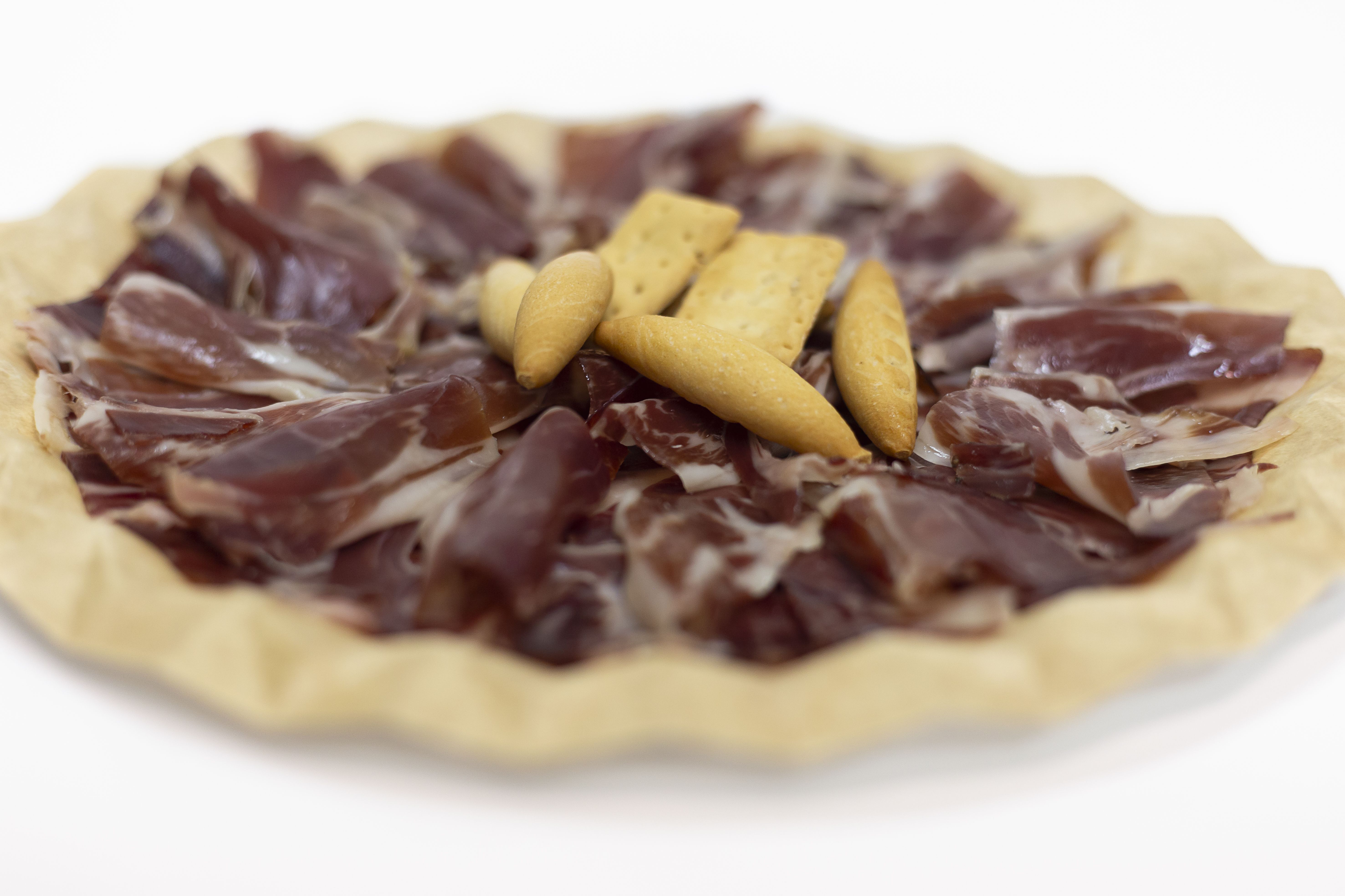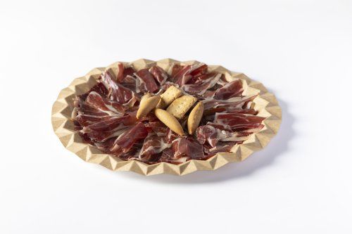 Nuestra Bandeja de Jamón Ibérico de 250 gr es una selección exquisita de jamón ibérico, cortado en finas lonchas para ofrecer una experiencia gastronómica inigualable. Cada loncha se funde en el paladar, liberando un sabor intenso y un aroma irresistible.
