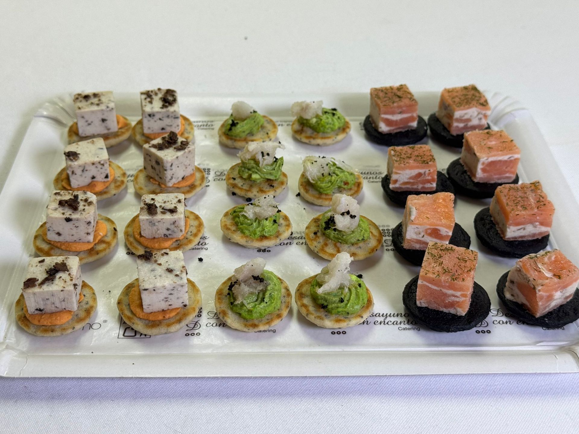 Cada blini es una pequeña obra de arte, elaborada con ingredientes frescos y de la más alta calidad, garantizando una explosión de sabor en cada mordisco. La bandeja incluye tres variedades irresistibles para satisfacer a todos los paladares: