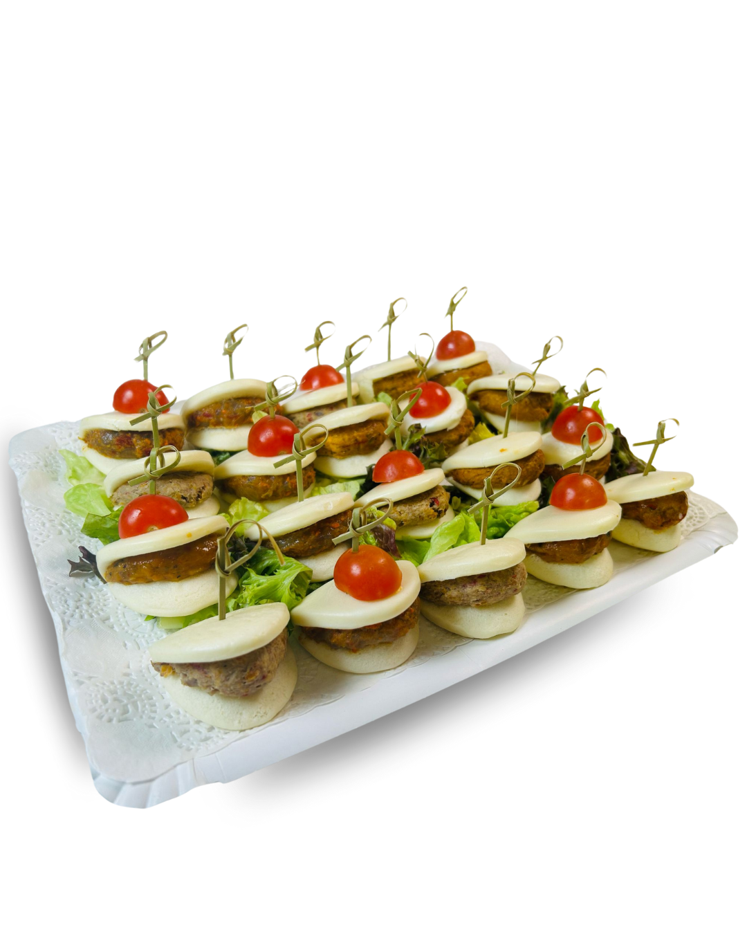 Nuestra Bandeja de Pan Bao Variados te lleva a un viaje culinario por sabores orientales y fusiones creativas. Incluye 20 unidades de pan bao rellenos con combinaciones únicas y deliciosas: