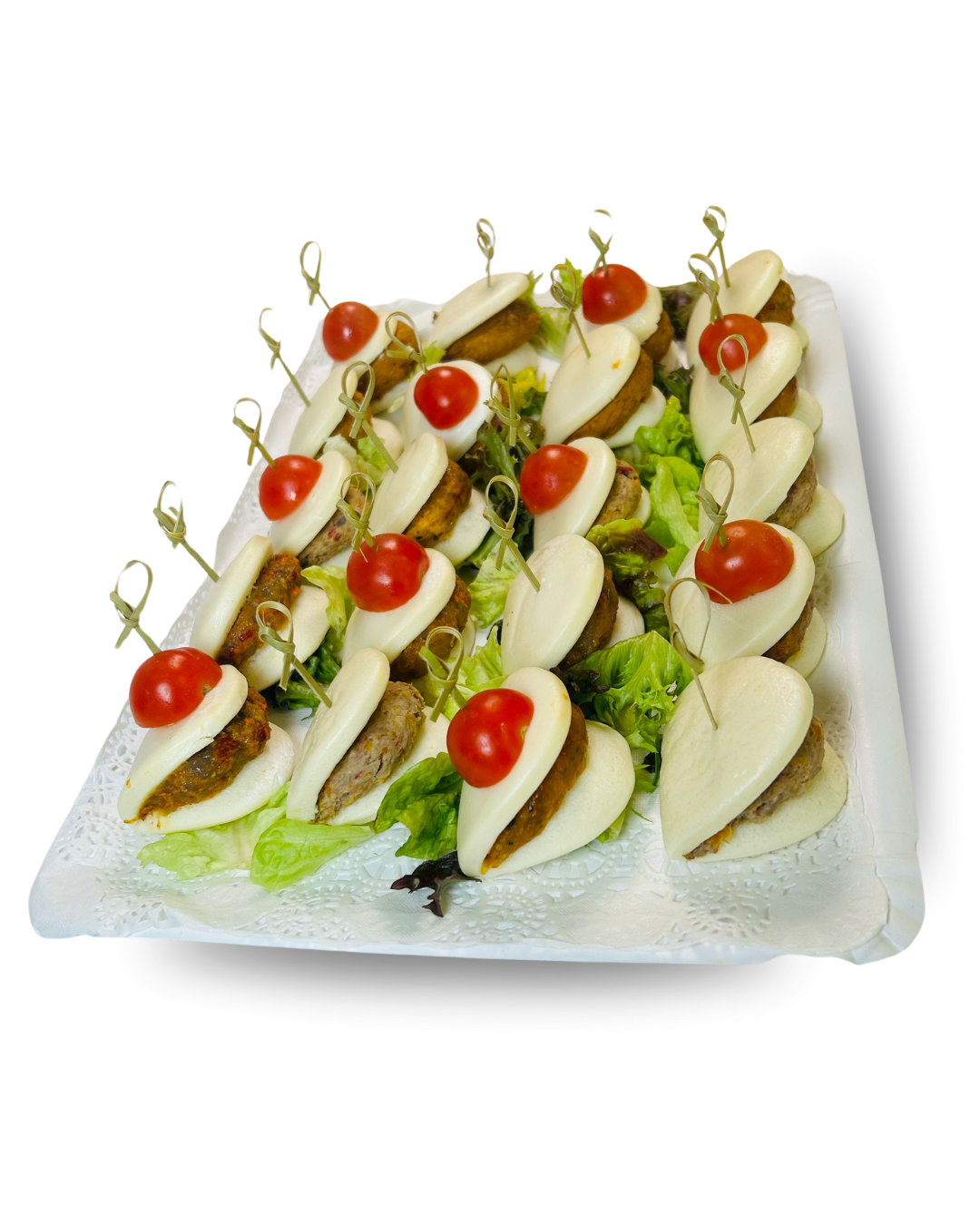 Nuestra Bandeja de Pan Bao Variados te lleva a un viaje culinario por sabores orientales y fusiones creativas. Incluye 20 unidades de pan bao rellenos con combinaciones únicas y deliciosas: