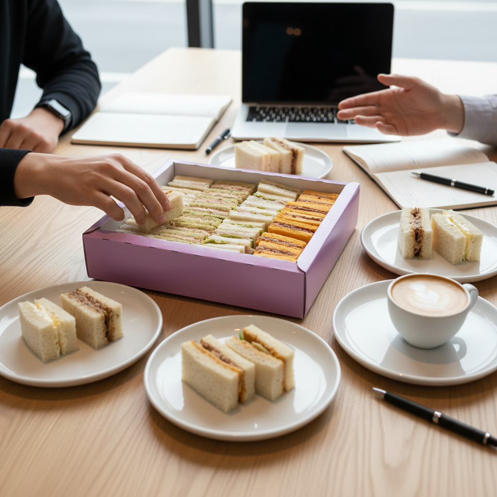 Nuestra Bandeja de sándwiches variados ofrece 32 mini sándwiches con cuatro rellenos deliciosos: pavo y aguacate, queso y nuez, paté ibérico ...... ¡Perfectos para cualquier ocasión!