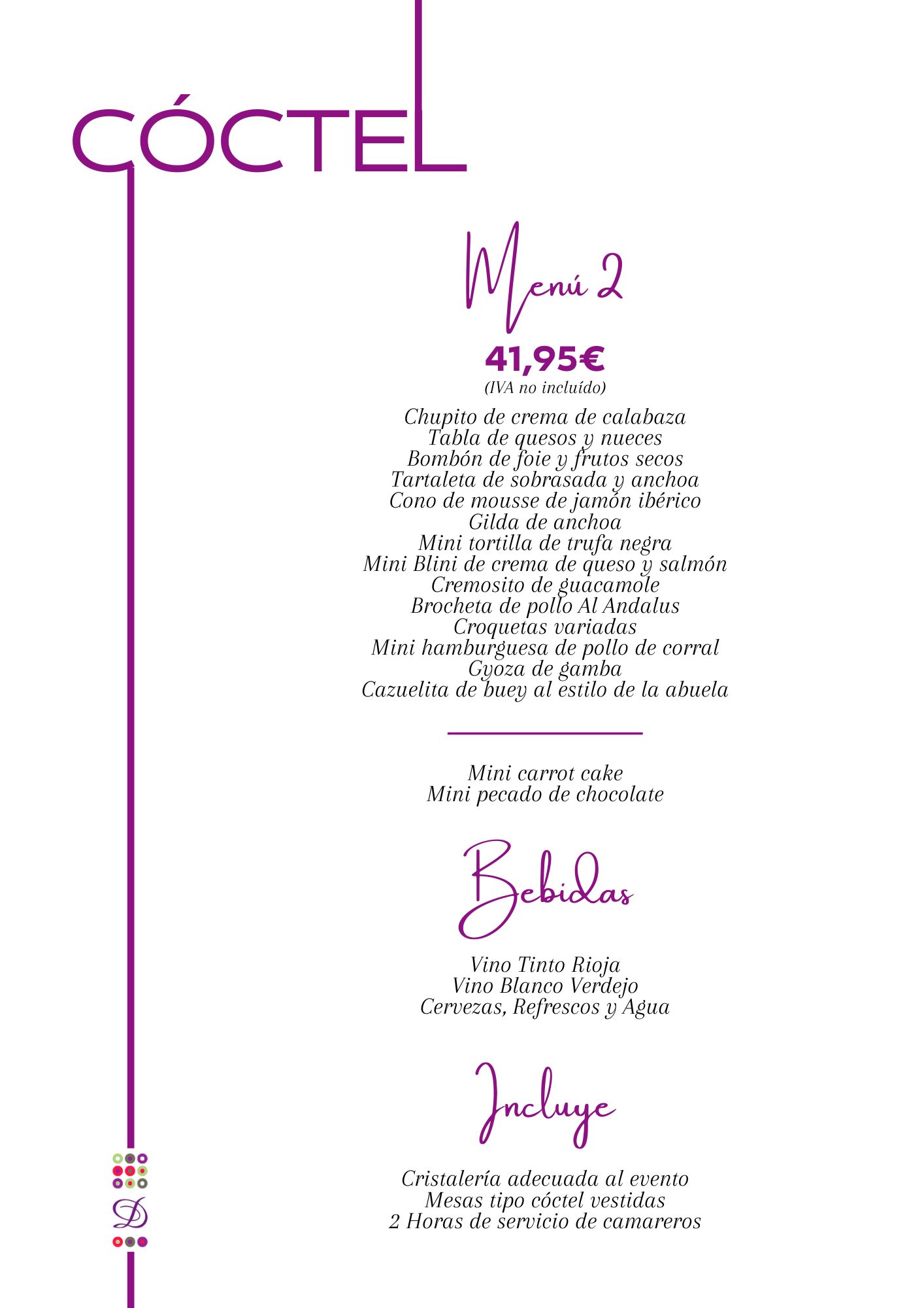 En Desayunos con Encanto te ofrecemos el servicio deCatering tipo Cóctelperfecto para tus eventos en Madrid. Nuestro equipo de expertos ha elaborado tres propuestas de deliciosos menús utilizando ingredientes frescos y de la más alta calidad para que elijas la que mejor se adapte a tus necesidades.Además,nuestro servicio incluye camareros profesionales durante dos horas, mesas altas vestidas y menaje adecuado para tu evento.Nos adaptamos a tus necesidades y creamos experiencias personalizadas para particulares y empresas. ¡Confía en nosotros para hacer de tu evento un éxito! *Servicio mínimo para 50 personas. MENÚ 1MENÚ 2 MENÚ 3