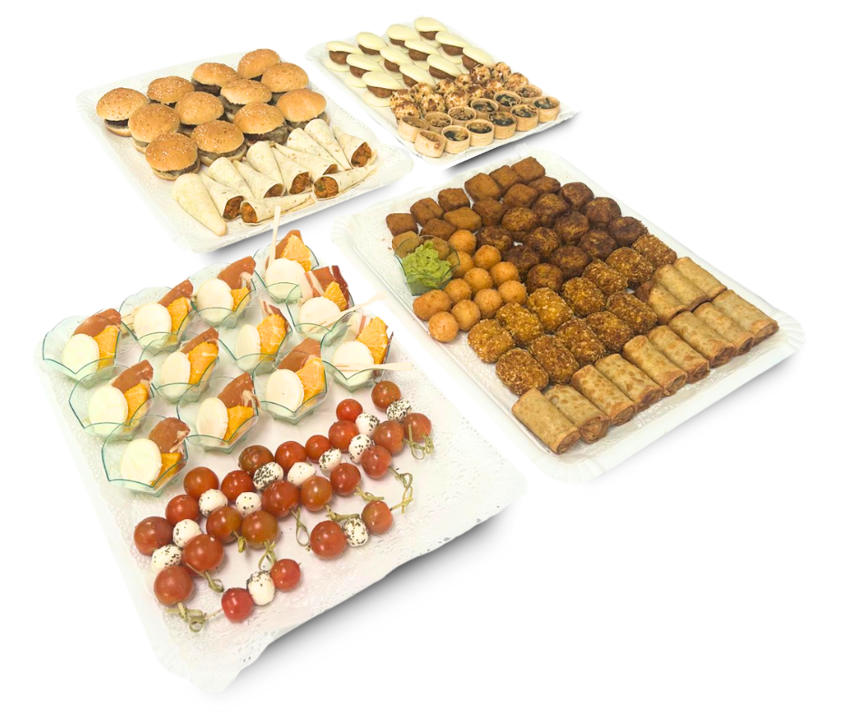 Nuestro CATERING 144 Piezas es una experiencia culinaria completa, diseñada para sorprender y deleitar a tus invitados con una variedad de sabores y texturas. Incluye: