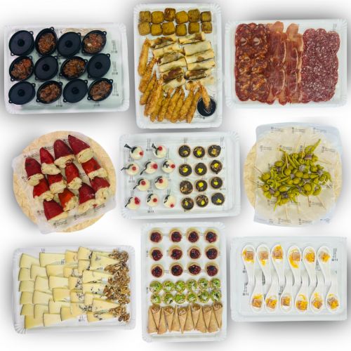 Estas Navidades nosotros nos encargamos de todo, con este Catering tendrás todos los entrantes preparados. Una colección de 14 aperitivos y bocados gourmet, perfectos para sorprender con una variedad de sabores, texturas y presentaciones: