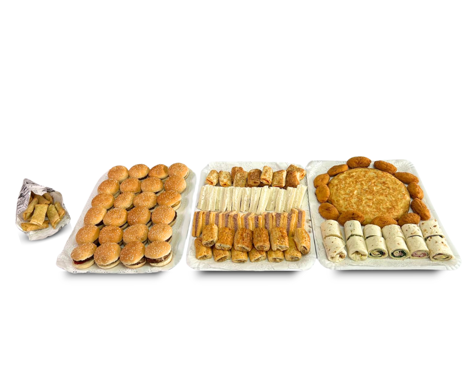 Nuestra OFERTA ESPECIAL DE CATERING te ofrece una selección variada de bocados deliciosos a un precio fijo y asequible. Elige para 12 o 24 personas y disfruta de mini-hamburguesas, croquetas, wraps y mucho más. ¡Oferta cerrada, precios fijos!