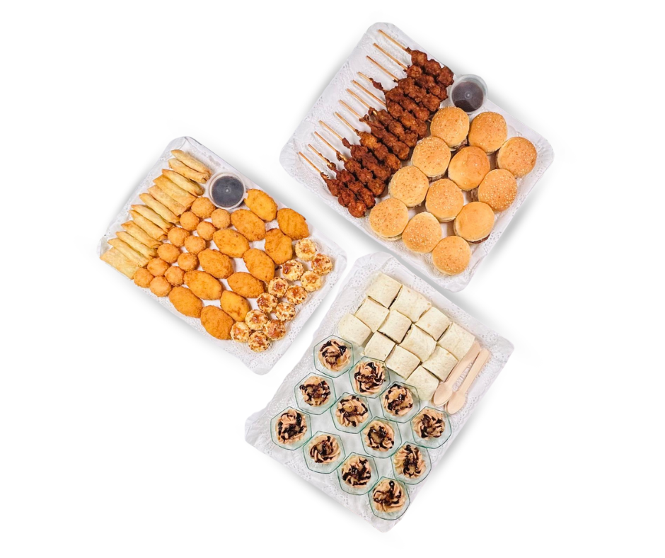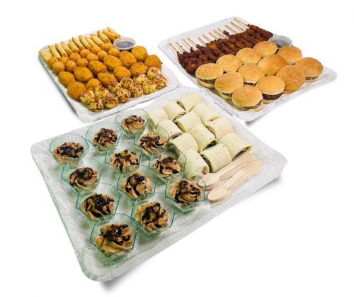 - 12 Mini hamburguesas de Ternera con cebolla caramelizada: Pequeñas delicias que combinan la jugosidad de la ternera con el dulzor de la cebolla caramelizada.