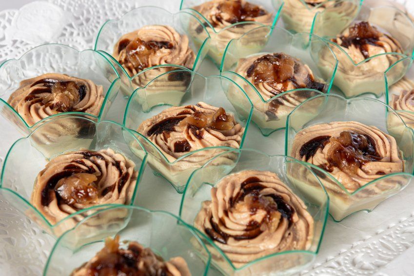 Nuestros 12 Vasitos de Foie de Pato Con Cebolla Caramelizada son una opción elegante y deliciosa para quienes buscan un aperitivo gourmet. La suavidad del foie de pato se complementa a la perfección con el dulzor de la cebolla caramelizada, creando una experiencia de sabor única.