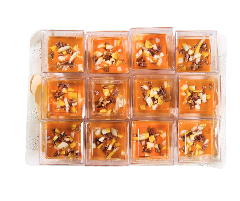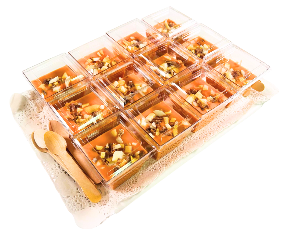 Disfruta de la auténtica tradición andaluza con nuestros vasitos de salmorejo. 12 raciones de sabor refrescante, elaboradas con ingredientes frescos y la receta clásica. Perfectos para cualquier ocasión.